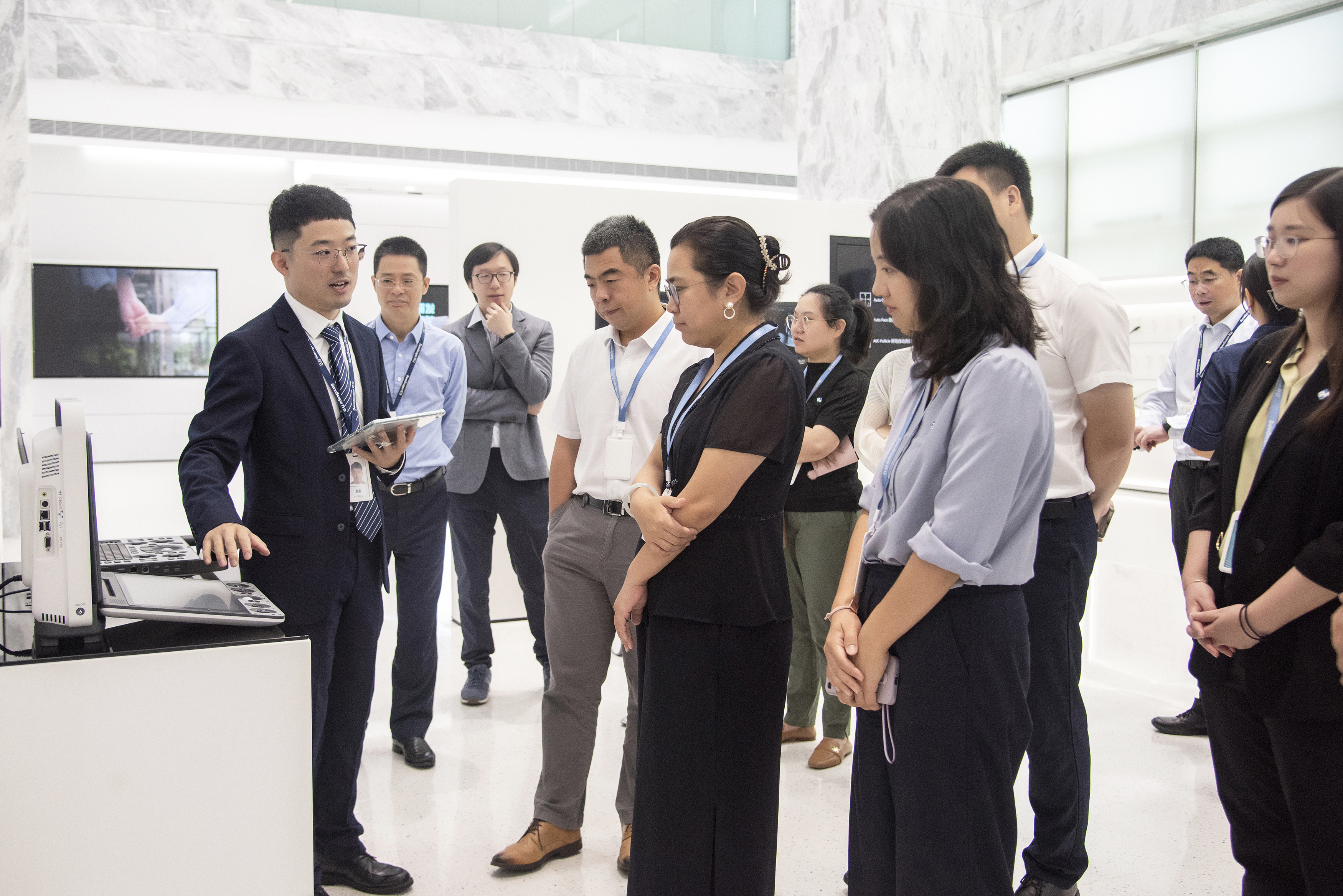 梅媚董事長一行對開立醫(yī)療的發(fā)展概況、業(yè)務(wù)板塊、創(chuàng)新技術(shù)等成果進(jìn)行詳細(xì)了解,重點(diǎn)考察了開立醫(yī)療在數(shù)字醫(yī)療、專科數(shù)字化解決方案等數(shù)智化領(lǐng)域的卓越成果,對開立醫(yī)療在推進(jìn)可持續(xù)醫(yī)療、引領(lǐng)醫(yī)療行業(yè)高質(zhì)量發(fā)展的積極貢獻(xiàn)給予高度評價。