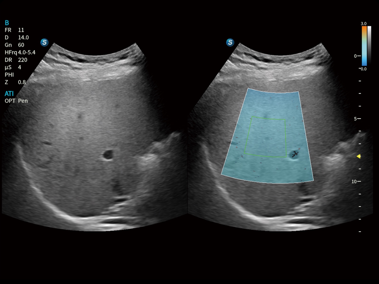 通過光照模型,使二維血流顯示出立體的效果,增加血流的敏感性、成束性,減少外溢。可以和其他不同的血流技術(shù)聯(lián)合使用,輕松應(yīng)對(duì)微小血管,增強(qiáng)血流的立體效果,提升視覺敏感性。